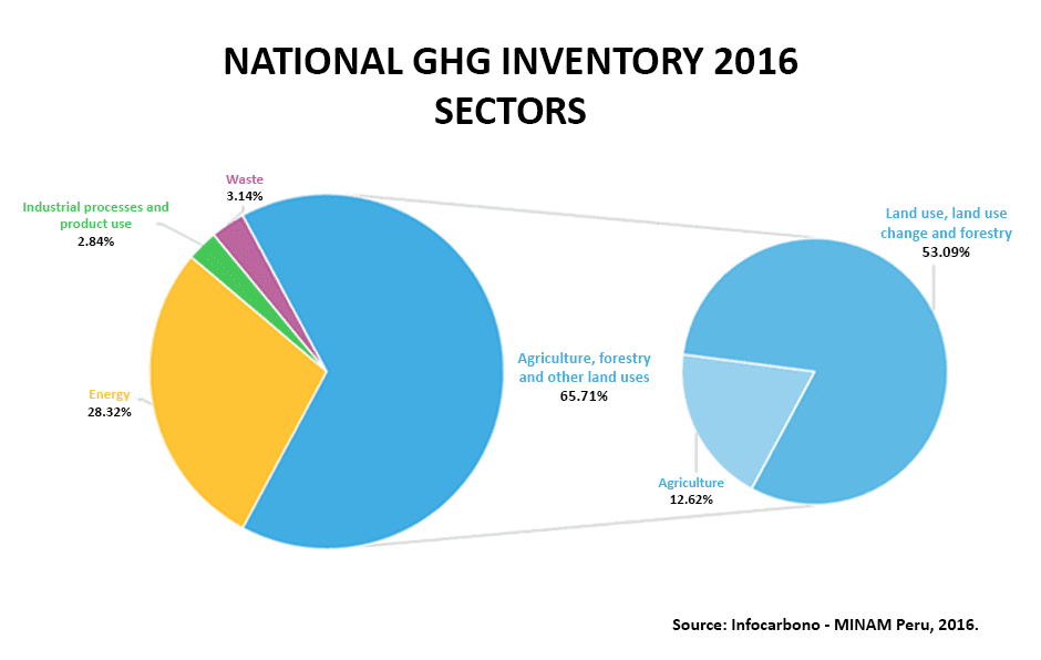 The 2016 National Greenhouse Gas Inventory – INGEI reported that in that year 65.71% of GHG emissions correspond to the Agriculture, Forestry and Other Land Use (ASOUT) sector; and within this, the main source of GHG emissions (53.09%) is found in the subcategory Land Use, Land Use Change and Forestry (LULUCF), associated with deforestation. For this reason, national efforts to reduce GHG emissions are focused on this area.