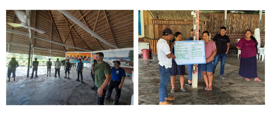 The workshop, held in San Lorenzo (Loreto), brought together more than 25 representatives from communities such as Nuevo Progreso, Puerto Industrial, San Fernando, Musa Karusha, Nueva Unión, Indios del Perú, Sasipahua, among others, as well as representatives from the partner organization Amazon Andes. Ten women and 16 men participated, and a space was set up for children under the age of 5 who accompanied their mothers and fathers during the day.