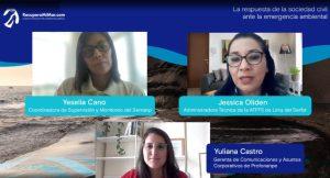 The funds raised were channeled through Profonanpe for the acquisition of the supplies required by the Sernanp and Serfor work teams in the disaster area. Yeselia Cano, Coordinator of Supervision and Monitoring of Sernanp, and Jessica Oliden, Technical Administrator of the Forestry and Wildlife Technical Administration of Lima of Serfor –who joined the event as representatives of the State– shared how #RecuperoMiMar was perceived from the work carried out by their respective institutions and thanked the prompt response of the campaign and civil society. Jessica Oliden highlighted that “The #RecuperoMiMar initiative helped us a lot in staff functions, for the rehabilitation of the affected fauna. However, this is still hard work.”
