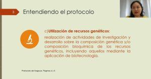 Nataly Ruiz Quiñones from Colombia explained the procedures and value provided by the Nagoya Protocol in access to microbial cultures for research with this resource, in order to guarantee its conservation and to ensure fair treatment of the people who are in charge of protecting it.